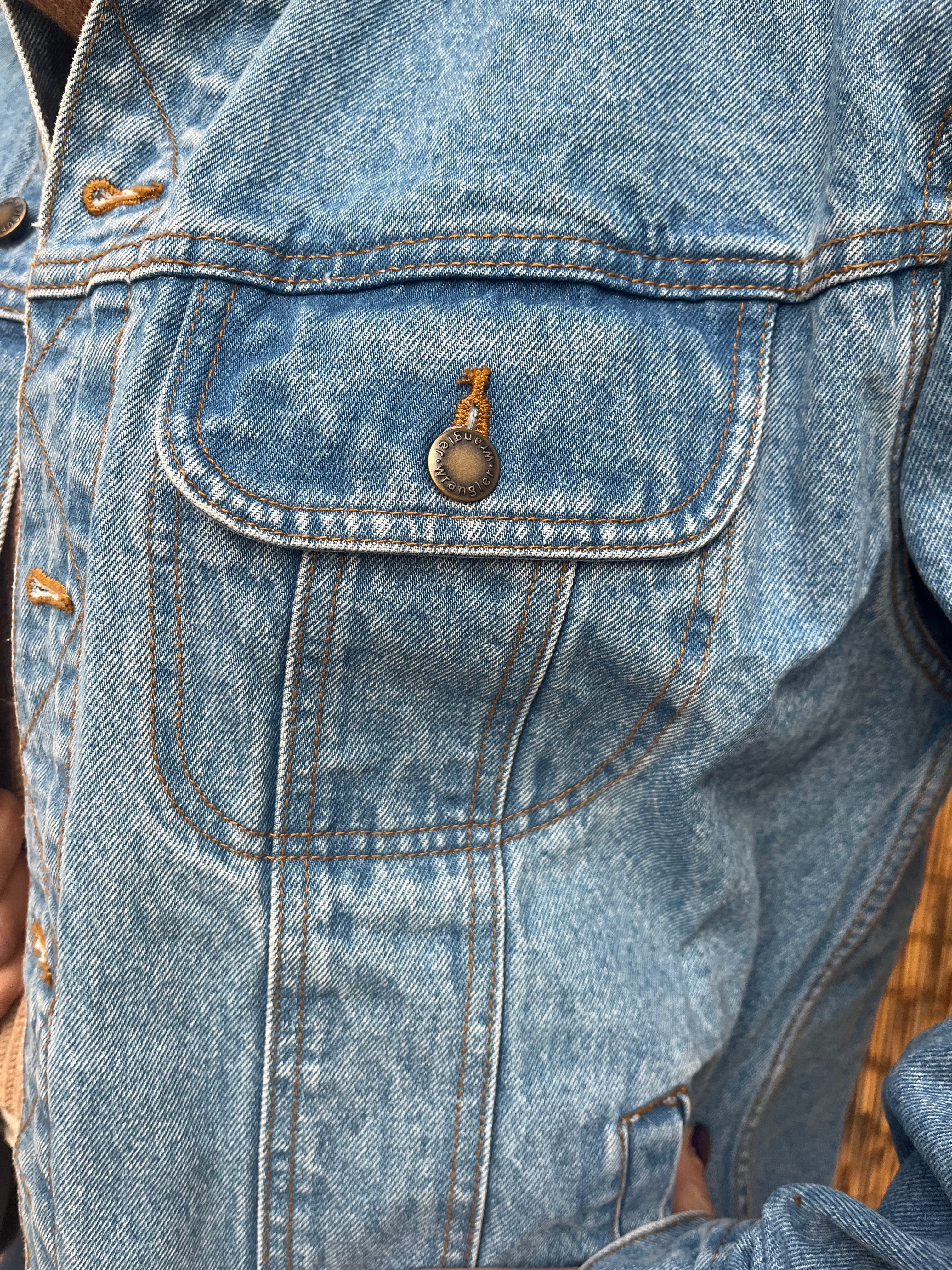 Reimagined in-house from a thrifted Wrangler denim jacket