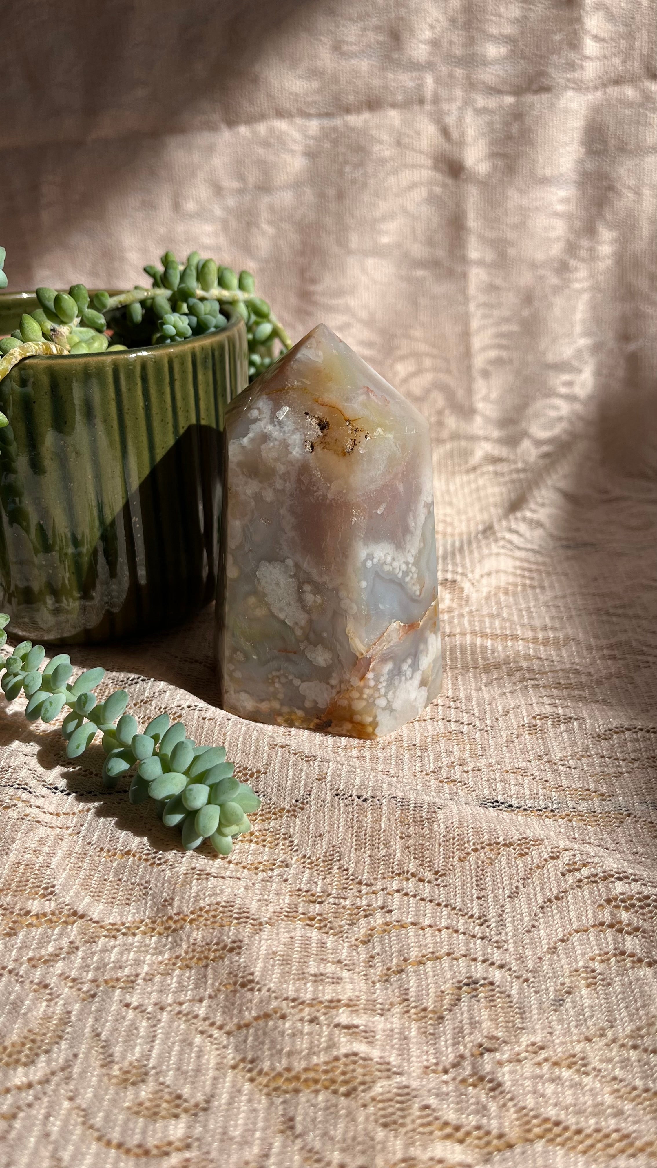Elevate your space and enhance your spiritual practice with our Flower Agate Tower. Order now to experience the nurturing and transformative energies of this exceptional gemstone. Ideal for meditation, energy work, or as a striking decor piece, it’s a must-have for anyone seeking beauty and balance in their life.