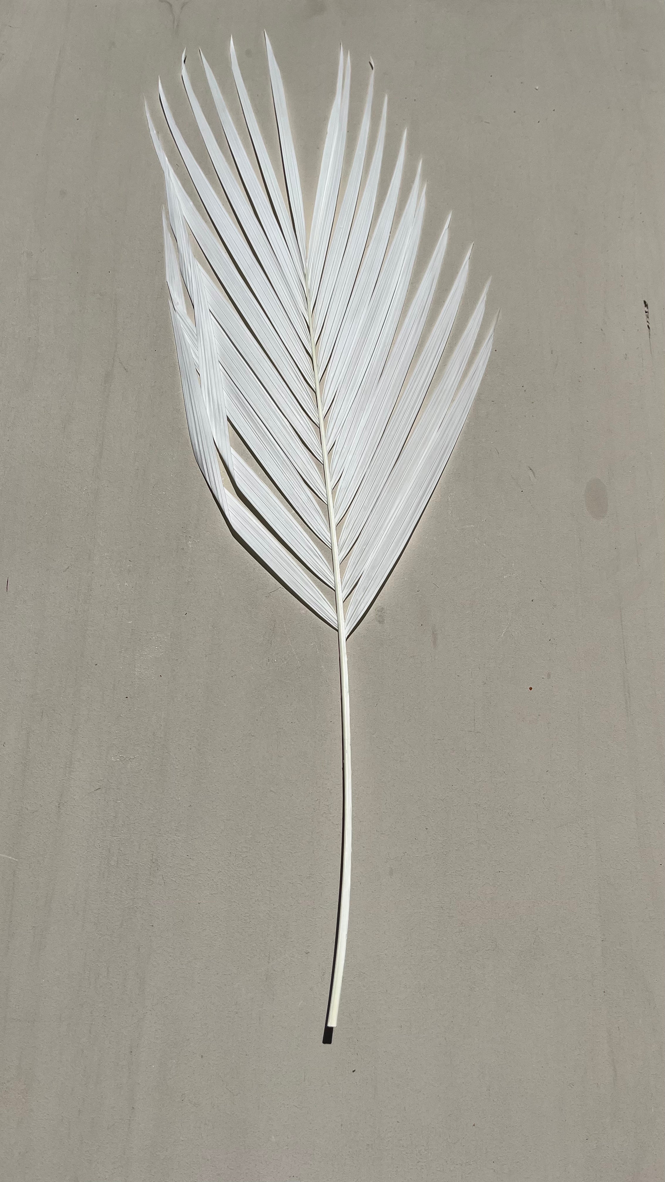 Elevate your home decor or event design with our Luxe Pure White Palm Leaf. This stunning statement piece is sure to add the WOW factor to any room or occasion. Each leaf is naturally dried and has unique natural imperfections that make it one-of-a-kind in size, color, and markings.