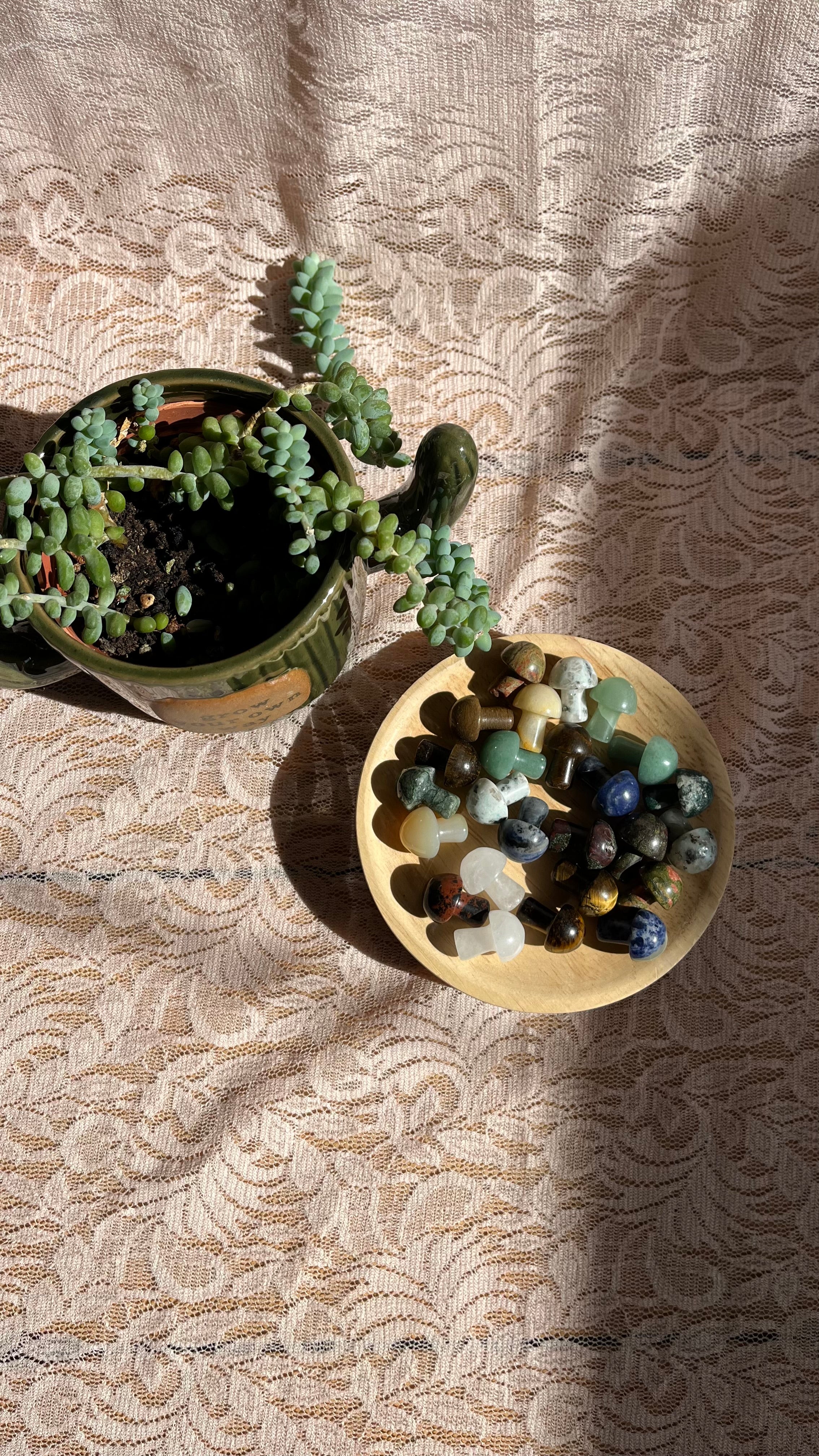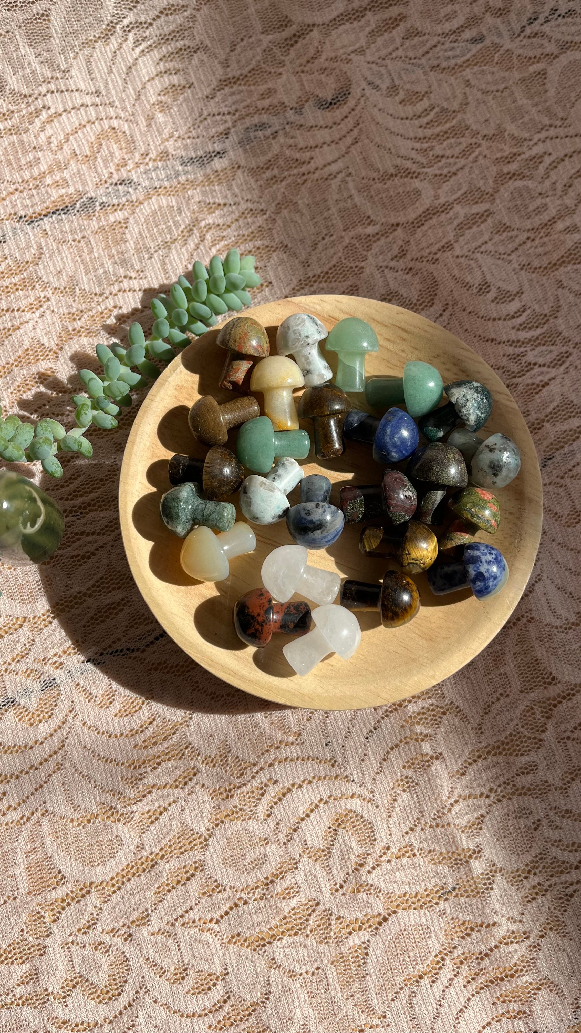 Perfect for collectors, crystal enthusiasts, and those who adore mushrooms or the element of surprise, our Mystery Crystal Mini Mushrooms offer a delightful journey of exploration and discovery. Whether you're seeking a unique gift or looking to infuse your surroundings with charm and mystique, these mini marvels are sure to captivate and inspire.