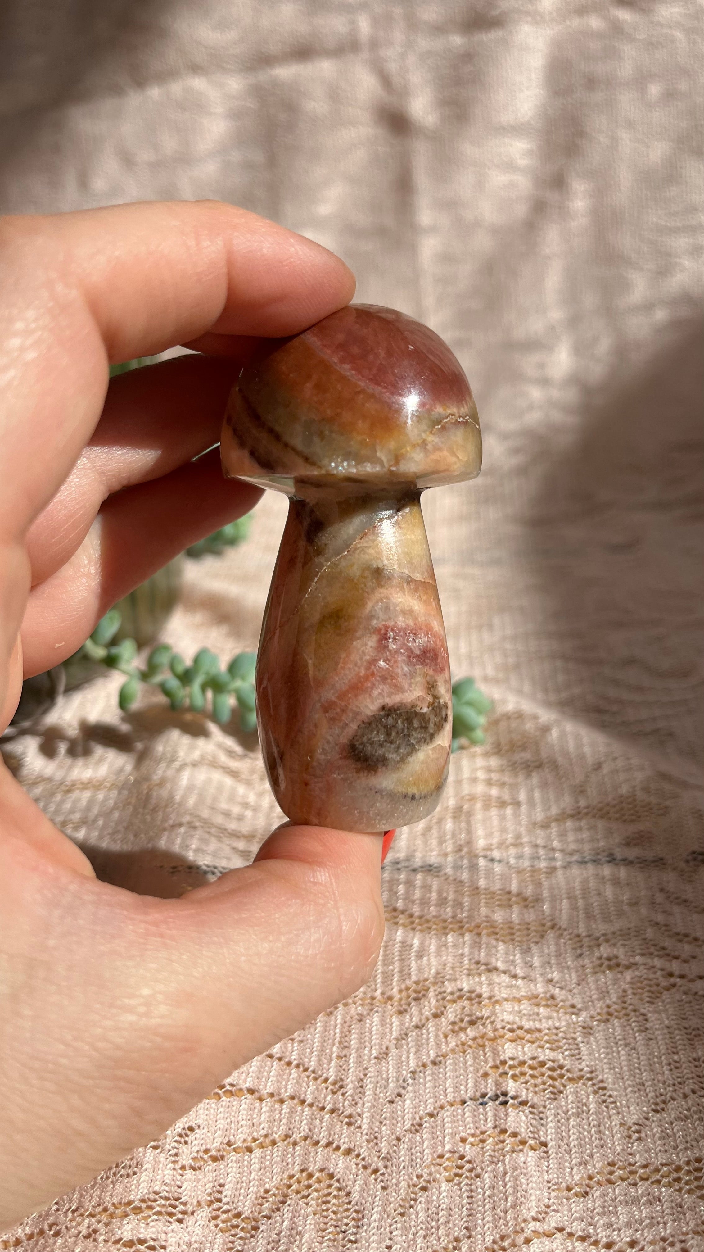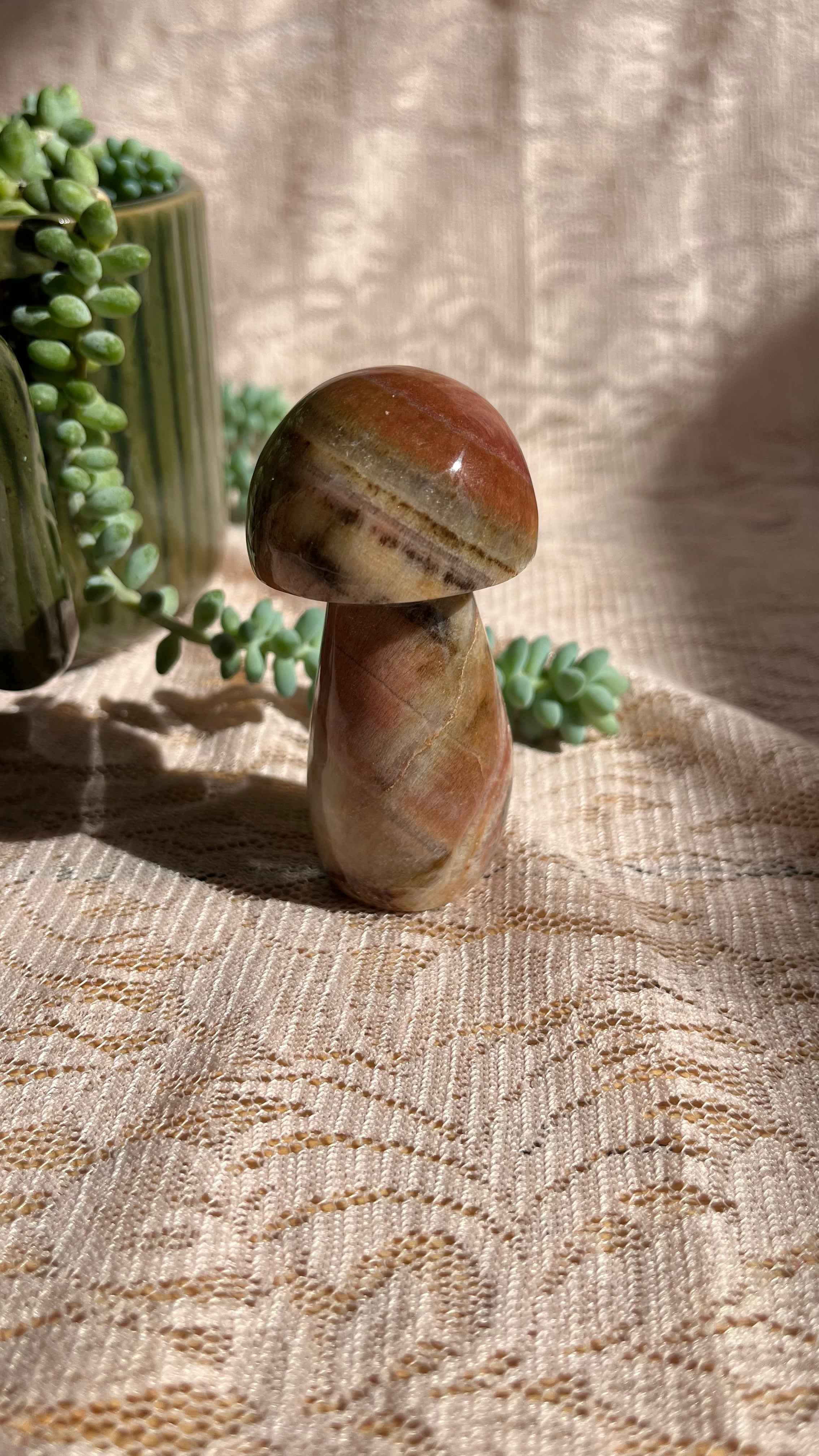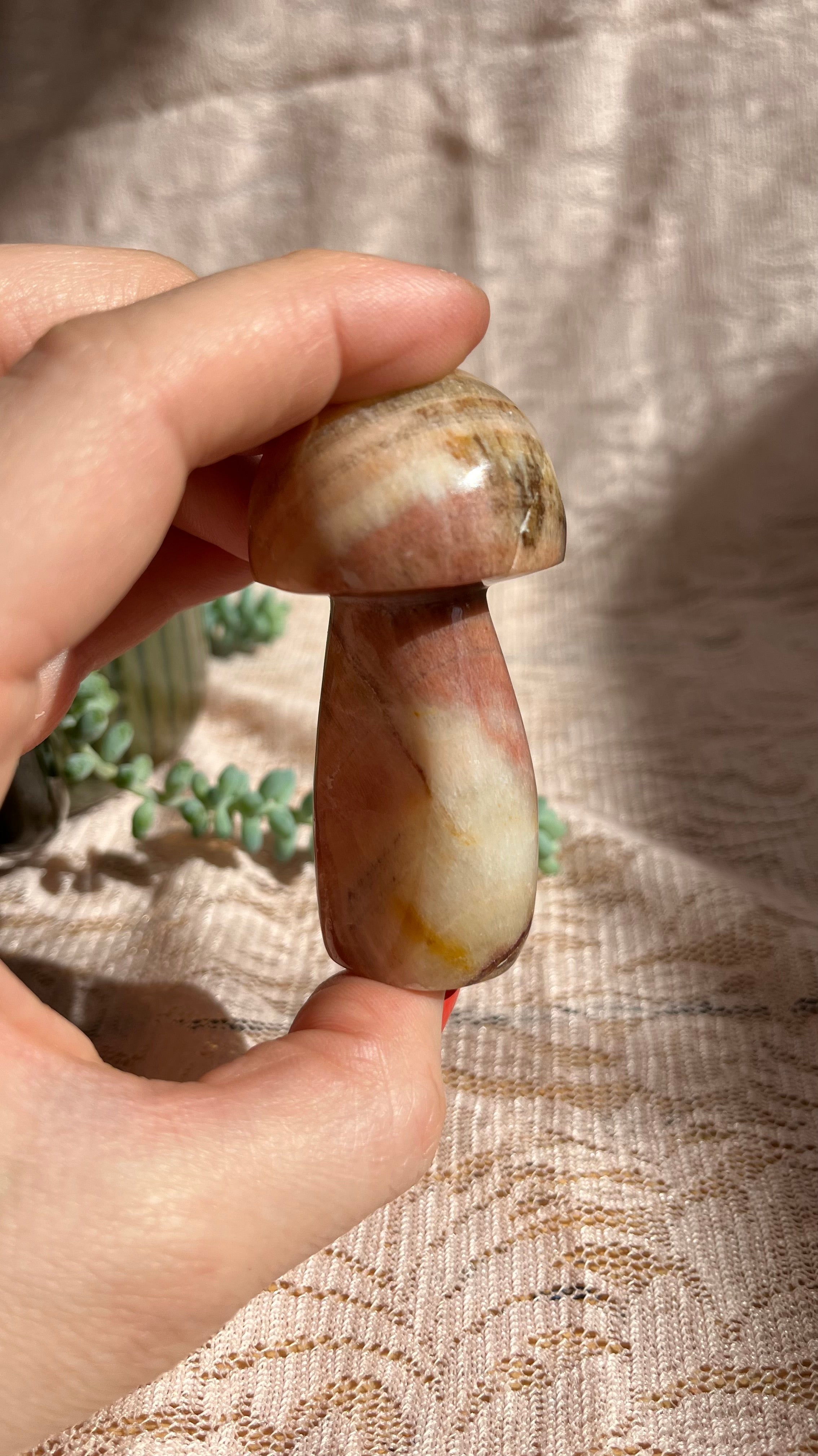Infuse Your Space with Warmth and Harmony with Our Peach Calcite Crystal Mushroom