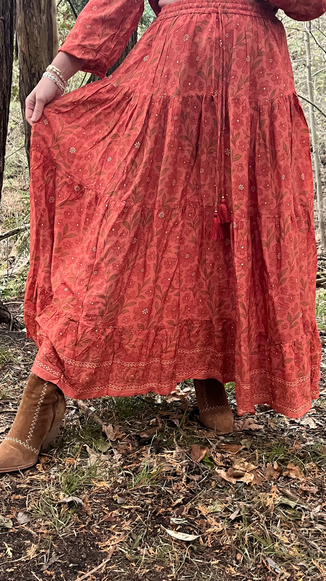 Part of the limited-edition Wildflower Canyon capsule—only 40 pieces were made. Produced in small batches to reduce waste and support slow fashion, each skirt is created through ethical, fair-trade partnerships with artisans who are paid fairly and work in safe conditions. Once this capsule sells out, it will not return—making your piece truly rare and consciously crafted.